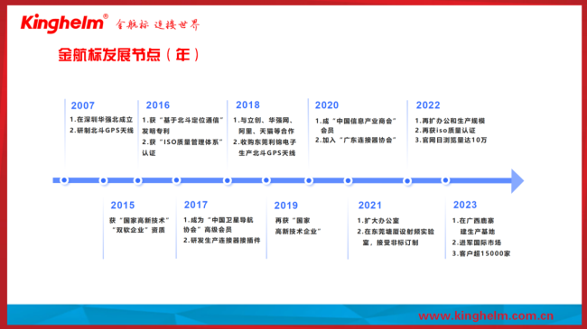 深圳市金航标电子有限公司,技术核心来自清华大学和电子科技大学,深耕微波射频技术十多年,是“中国卫星导航定位协会”、“中国信息产业商会”和“广东省连接器协会”的会员,提供射频天线、连接器和接插件、线束系列产品和非标产品的定制。